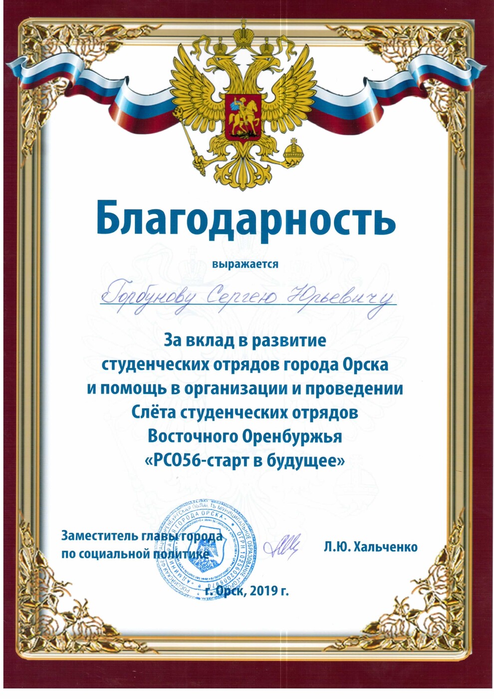 Руководитель штаба студенческих отрядов Восточного Оренбуржья (Территориальный исполнительный директор)