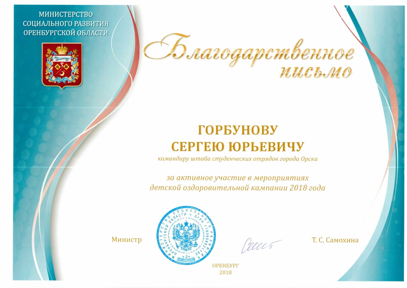 - Организация и проведение ежегодного Закрытия III трудового семестра СО Оренбургской области;