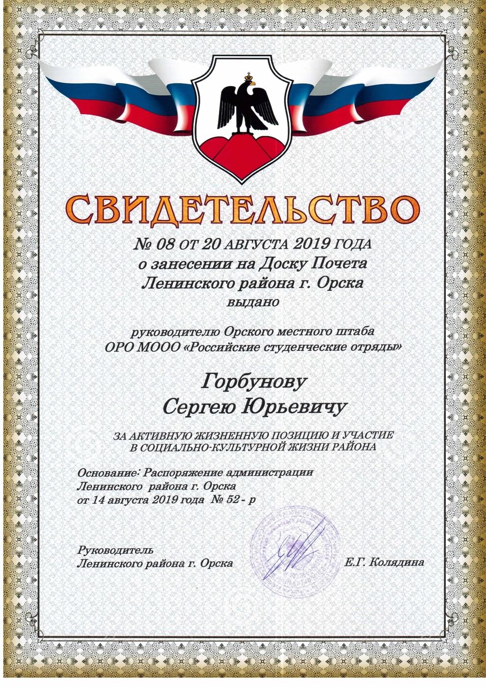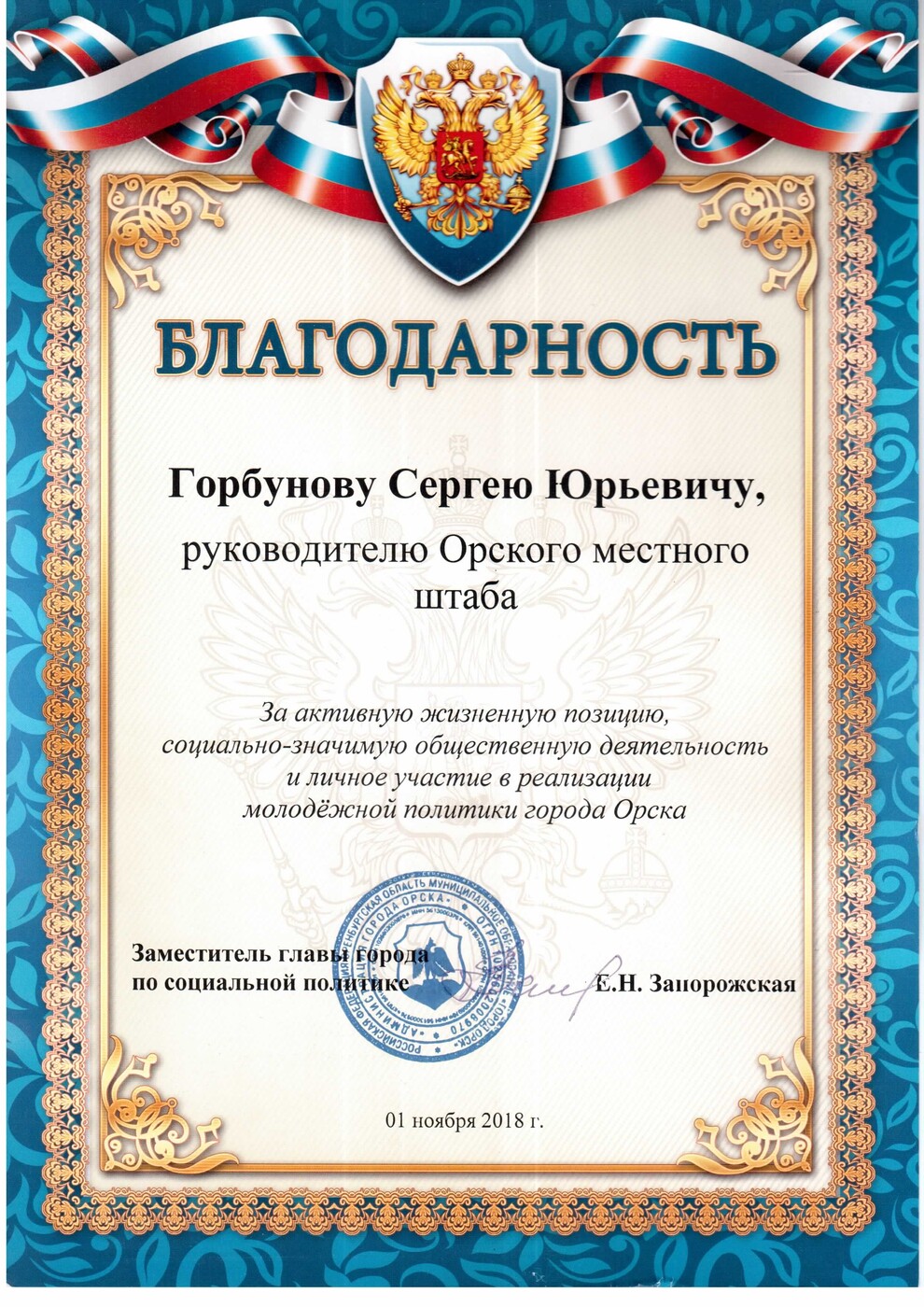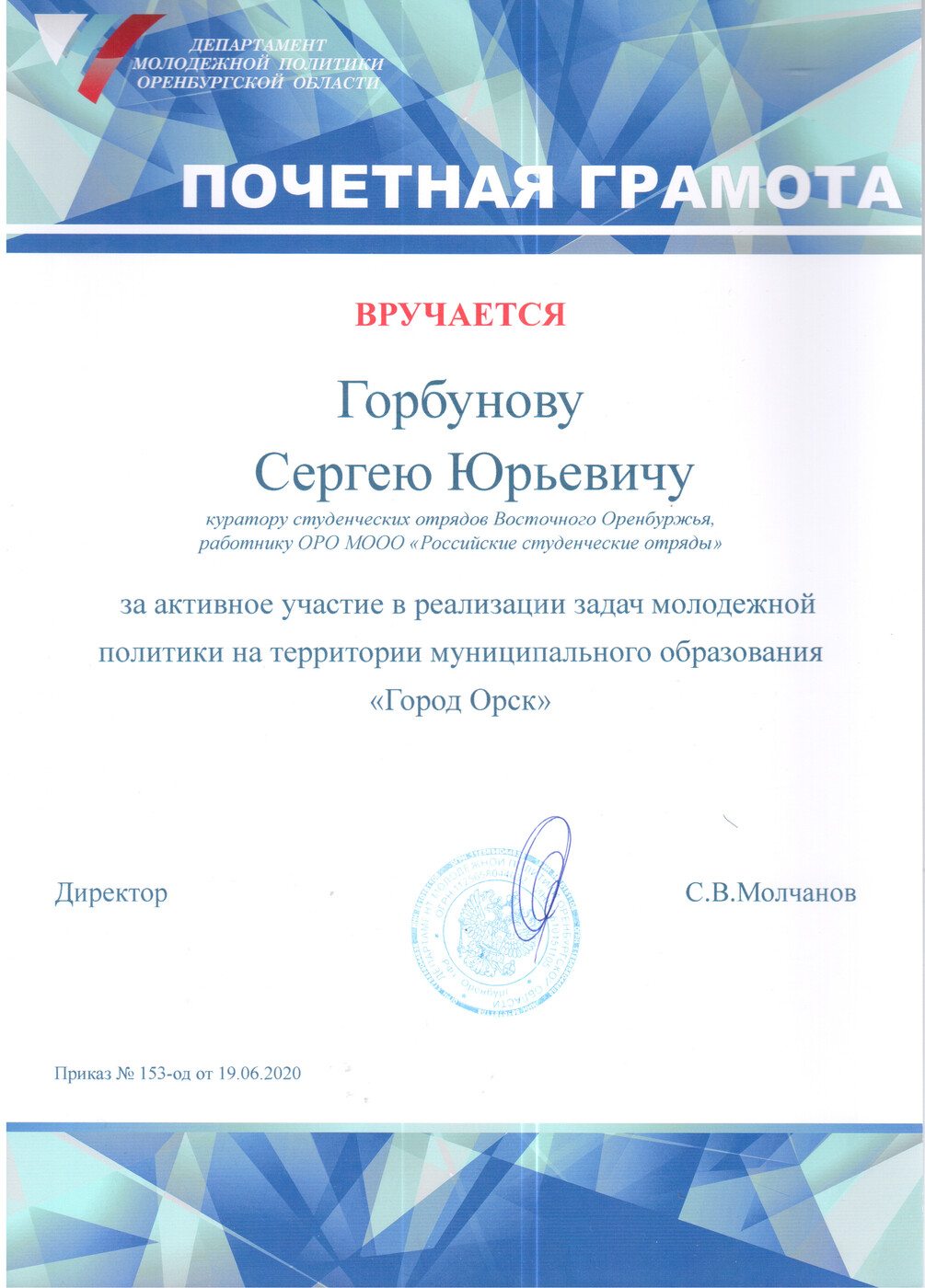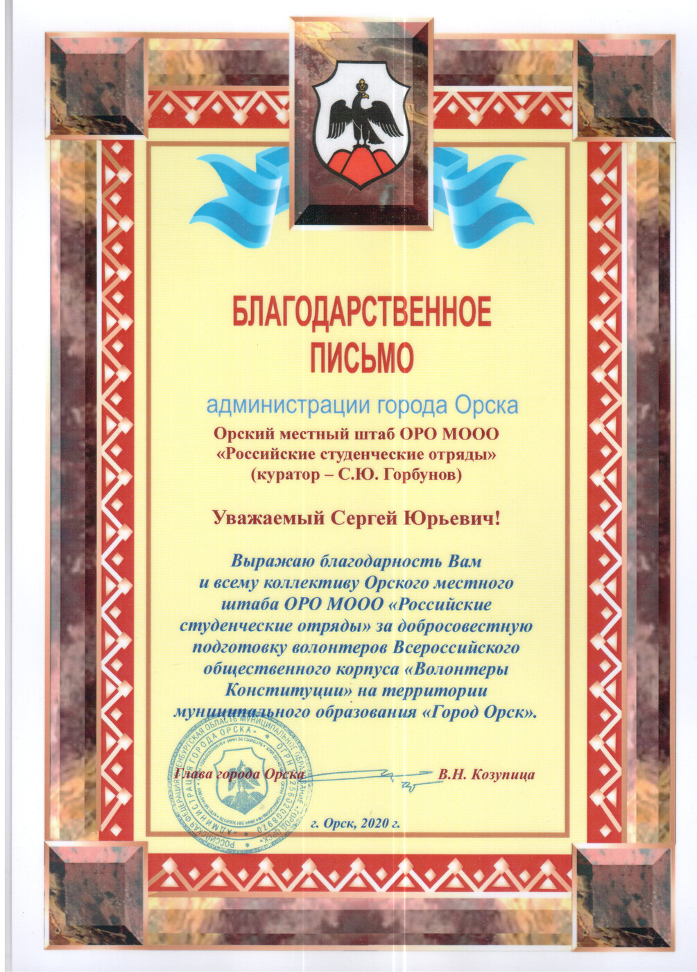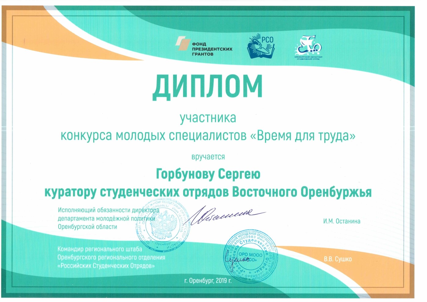 Руководитель штаба студенческих отрядов Восточного Оренбуржья (Территориальный исполнительный директор)